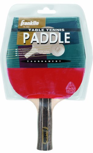 Our Franklin Sports Table Tennis Tournament paddle features a 5-ply poplar plywood handle with pips out on one side and pips in on the other. It also has 1.5 mm sponge backing, colorful tapered edges and a premium laminated anatomically shaped handle.