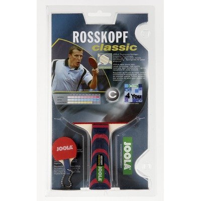 The Rosskopf Classis is one of the highest quality recreational table tennis rackets available. This competition-level racket uses inverted ITTF approved rubber with a sticky top sheet and lively sponge for a combinatons of unparalleled spin and power. The Classic is great for players who can play all basic strokes and successfully apply stretgy to their game.The JOOLA Rosskopf Classic is a competition-grade (stage five) table tennis racket, using inverted rubber with a sticky topsheet and lively, responsive sponge for a rare combination of control and speed. Designed for advanced players who have mastered all basic strokes and in-game strategy, the rackets is approved by the ITTF. A free miniature racket is also included.